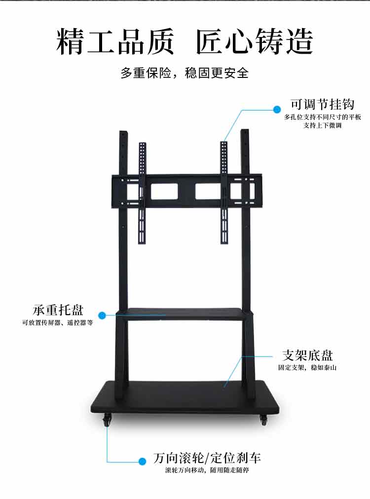黑色教學(xué)會(huì)議移動(dòng)支架專用液晶電視、廣告機(jī)、觸控一體機(jī)、電子白板、教學(xué)會(huì)議等,高低升降,隨意調(diào)節(jié)。