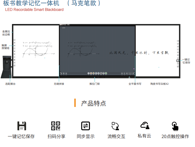 如今,不少學校里的課堂,記憶中那一面樸素黑板不見了,轉(zhuǎn)而換上了現(xiàn)代化的板書教學記憶一體機。很多老師對此大為稱贊,它不是讓老師告別用粉筆進行板書,而是借助人機交互、多媒體、板書記憶和分享等一系列實用功能,實現(xiàn)現(xiàn)代化教育,它對于教學的價值是顯而易見的。