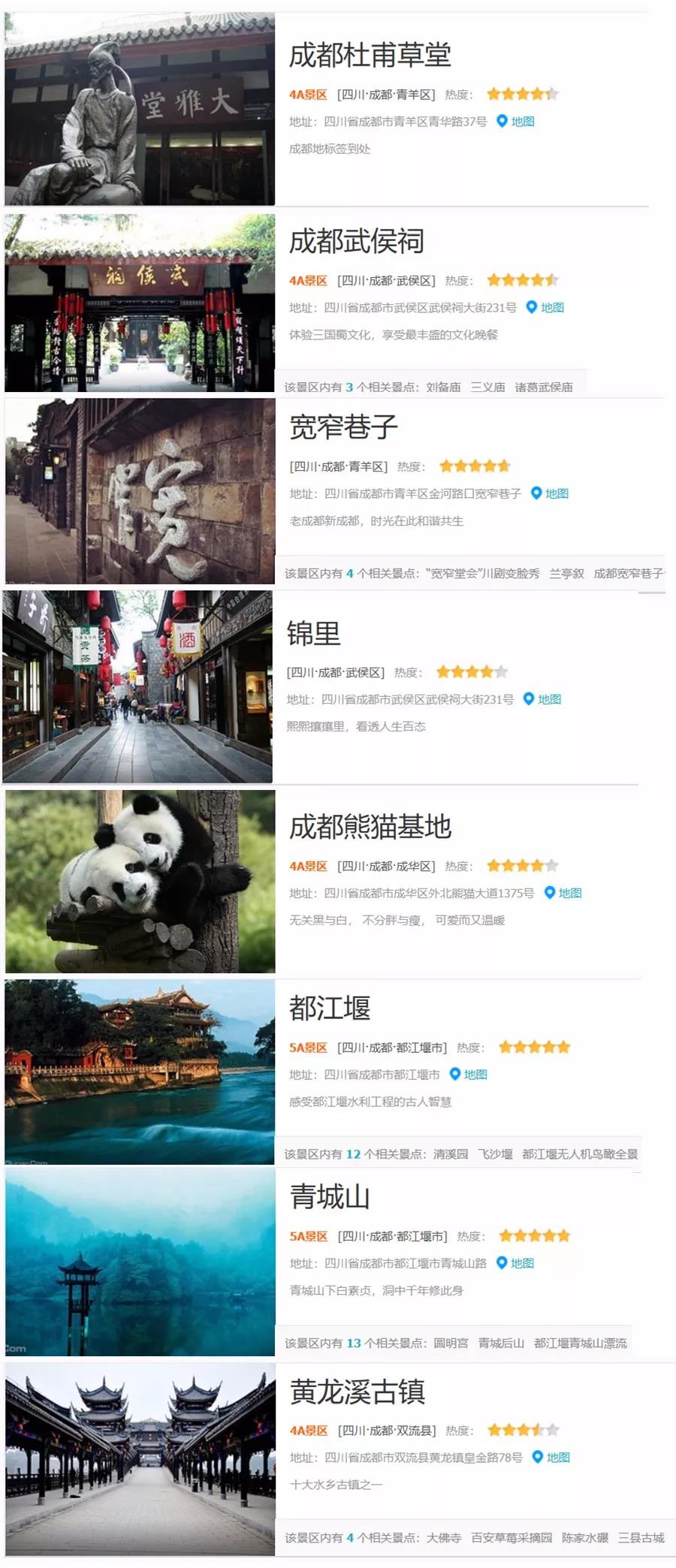 極高的景點(diǎn),希望給朋友們的成都之行提供方便。